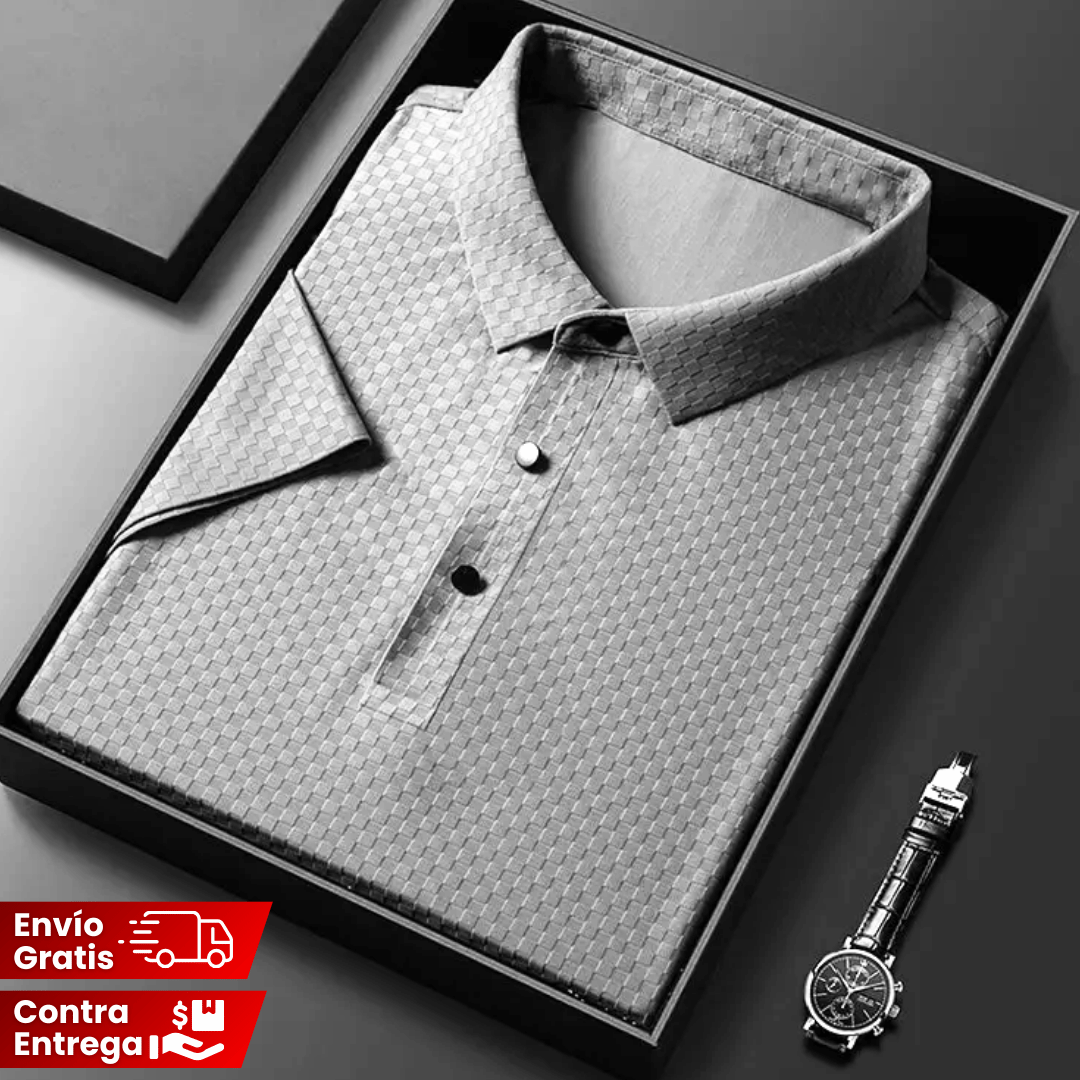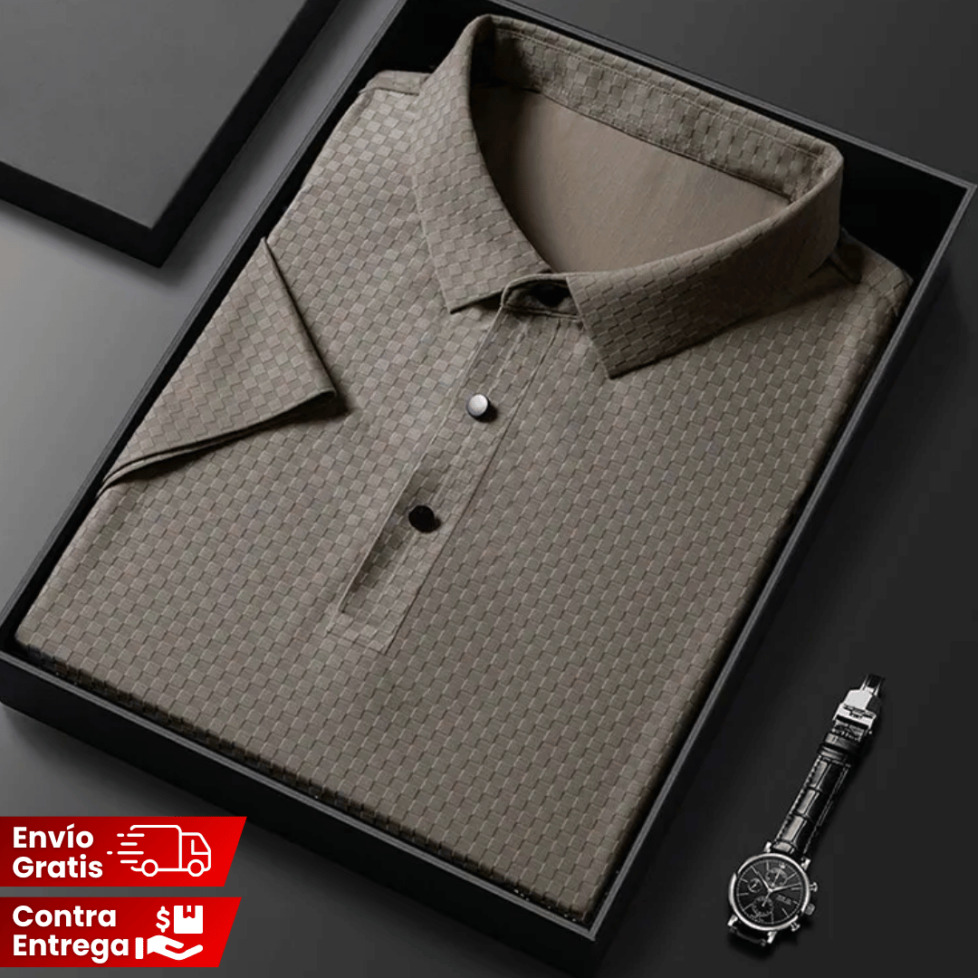 Descubre la elegancia definitiva con nuestra exclusiva Camisa Polo de Manga Corta de Seda Helada. 👔