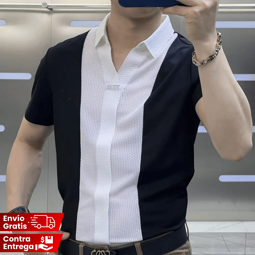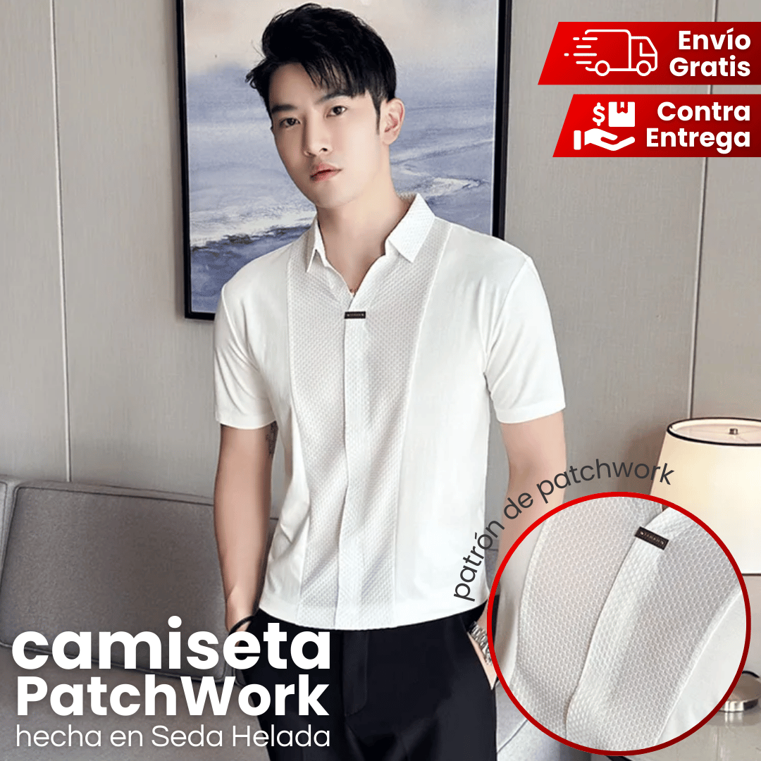 Descubre la elegancia definitiva con nuestra exclusiva Camiseta Patchwork de Seda Helada. 👔